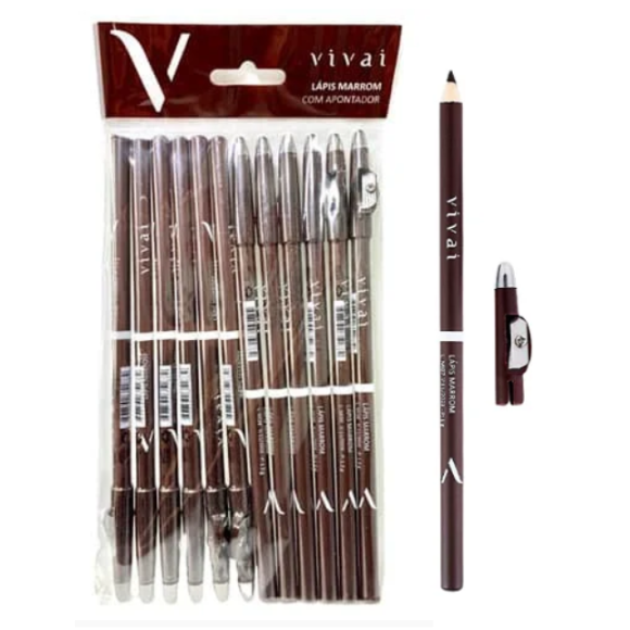 LÁPIS MARROM COM APONTADOR VIVAI PCT 12 PÇS