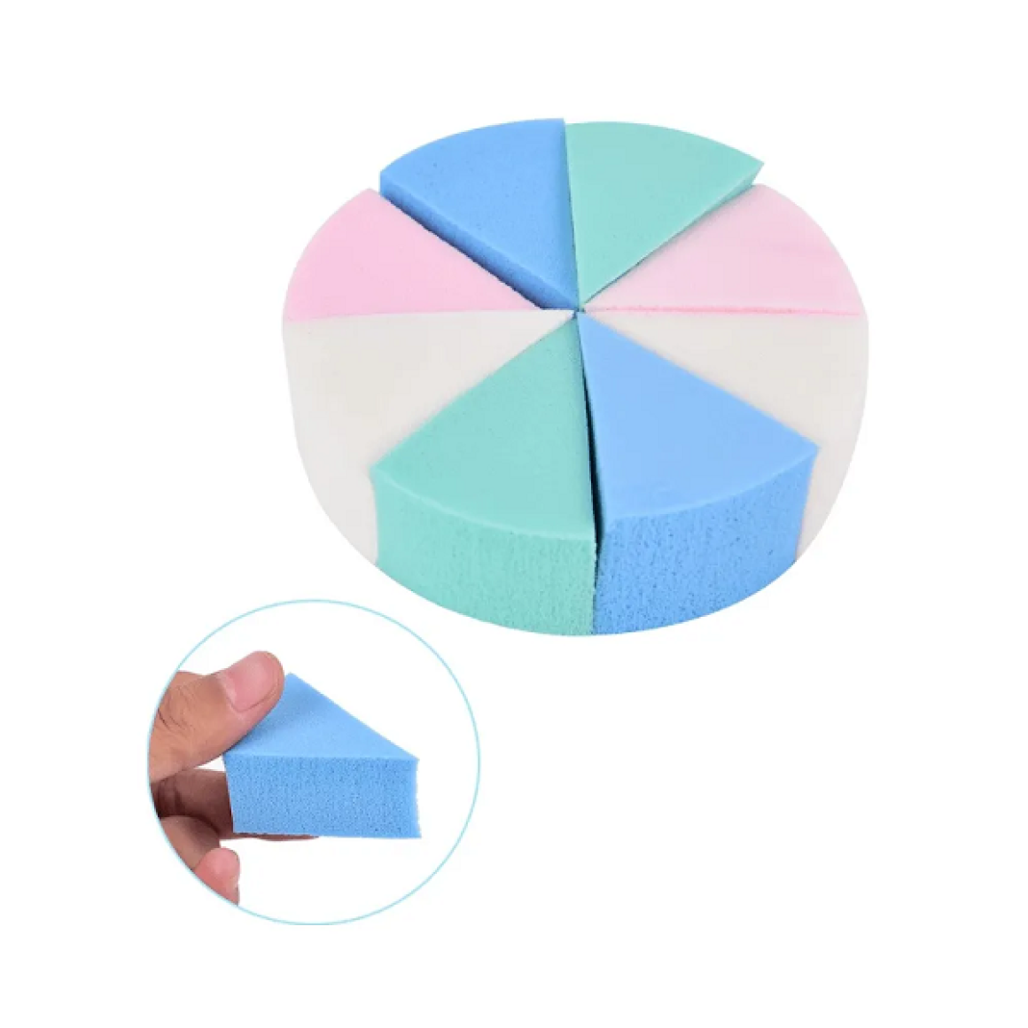 Descrição: Esponja para limpeza facial em látex tipo pizza com 8 peças coloridas. Ideal para aplicar ou remover maquiagem. Pode ser utilizada para esfumaçar o efeito da maquiagem. Lavável e com excelente durabilidade.