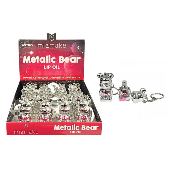 Descrição: O Lip Oil Metallic Bear da Mia Make é um gloss labial que combina hidratação e um acabamento metálico moderno. Além da função de maquiagem, ele se destaca pelo design divertido em formato de urso, que pode ser usado como um chaveiro.