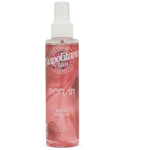 Descrição: O Body Splash da Poran tem uma fragrância intensa e partículas de brilho que perfumam e iluminam a pele, que buscam proporcionar sensação de bem-estar.
