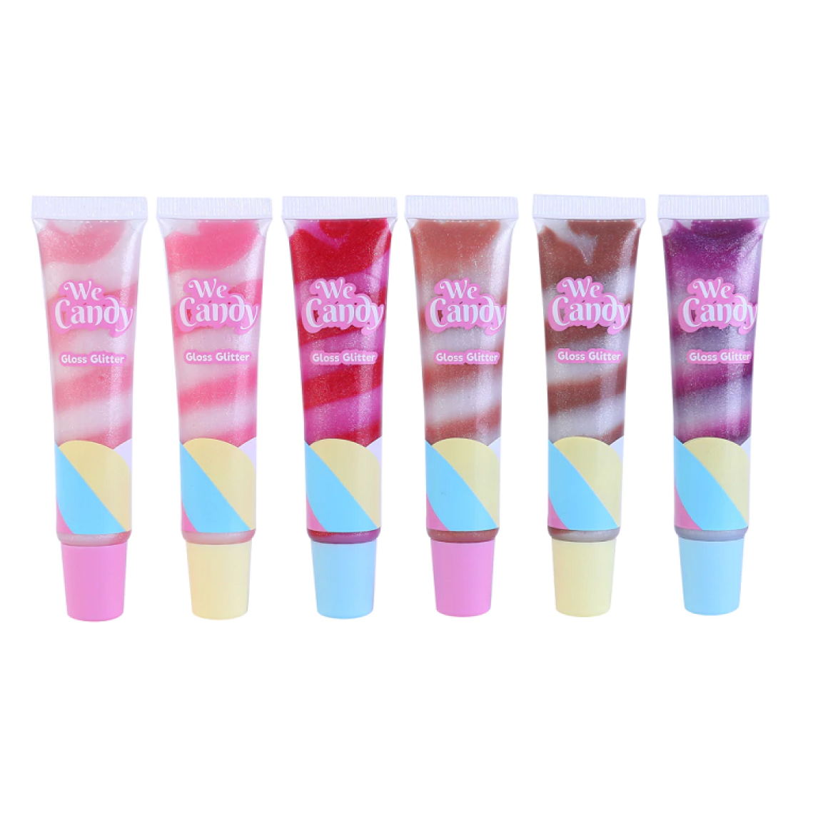 Descrição: Gloss Glitter We Candy é um produto de maquiagem labial que contém partículas de brilho, proporcionando um efeito luminoso e radiante aos lábios.