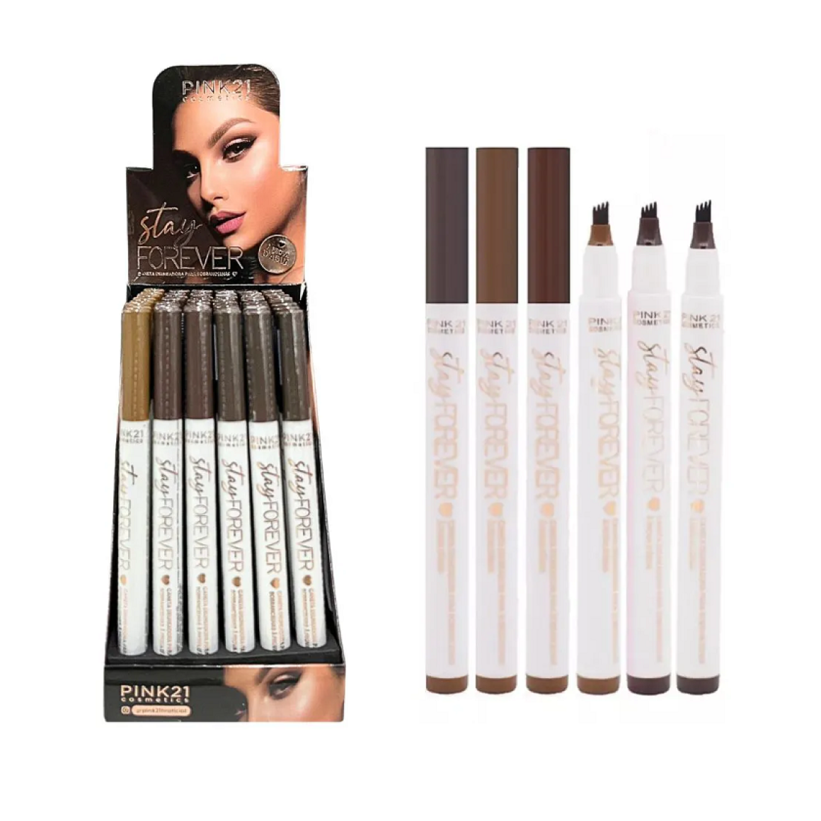 Descrição: A Caneta Delineadora Stay Forever Pink 21 é um produto para sobrancelhas com ponta fina que imita fios, alta fixação, fácil aplicação, ótima pigmentação e resistência à água e ao suor. Ela permite criar traços delicados para preencher as sobrancelhas de forma natural e tem longa duração, sem transferência.