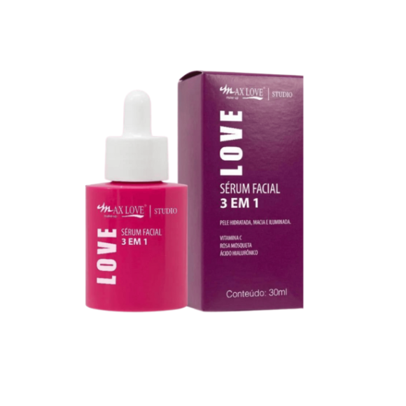 Descrição: O Sérum Facial Max Love 3 em 1 possui um blend de 3 ativos super benéficos para a pele em um único sérum. Seu uso contínuo auxilia na melhora da hidratação, maciez, luminosidade e tonificação da pele. Também auxilia na prevenção dos efeitos das intempéries e envelhecimento.