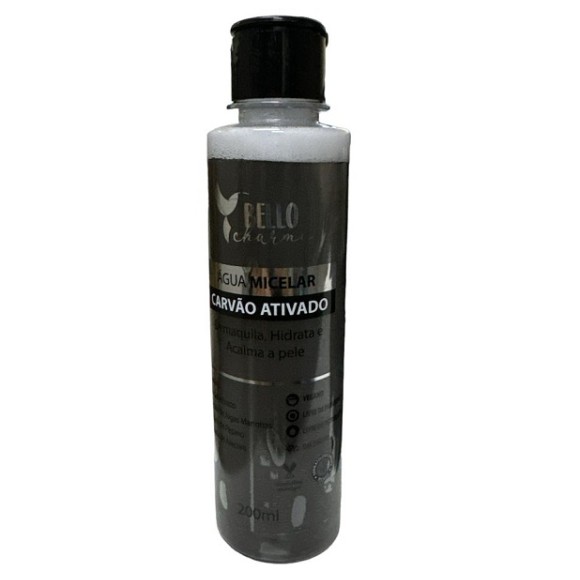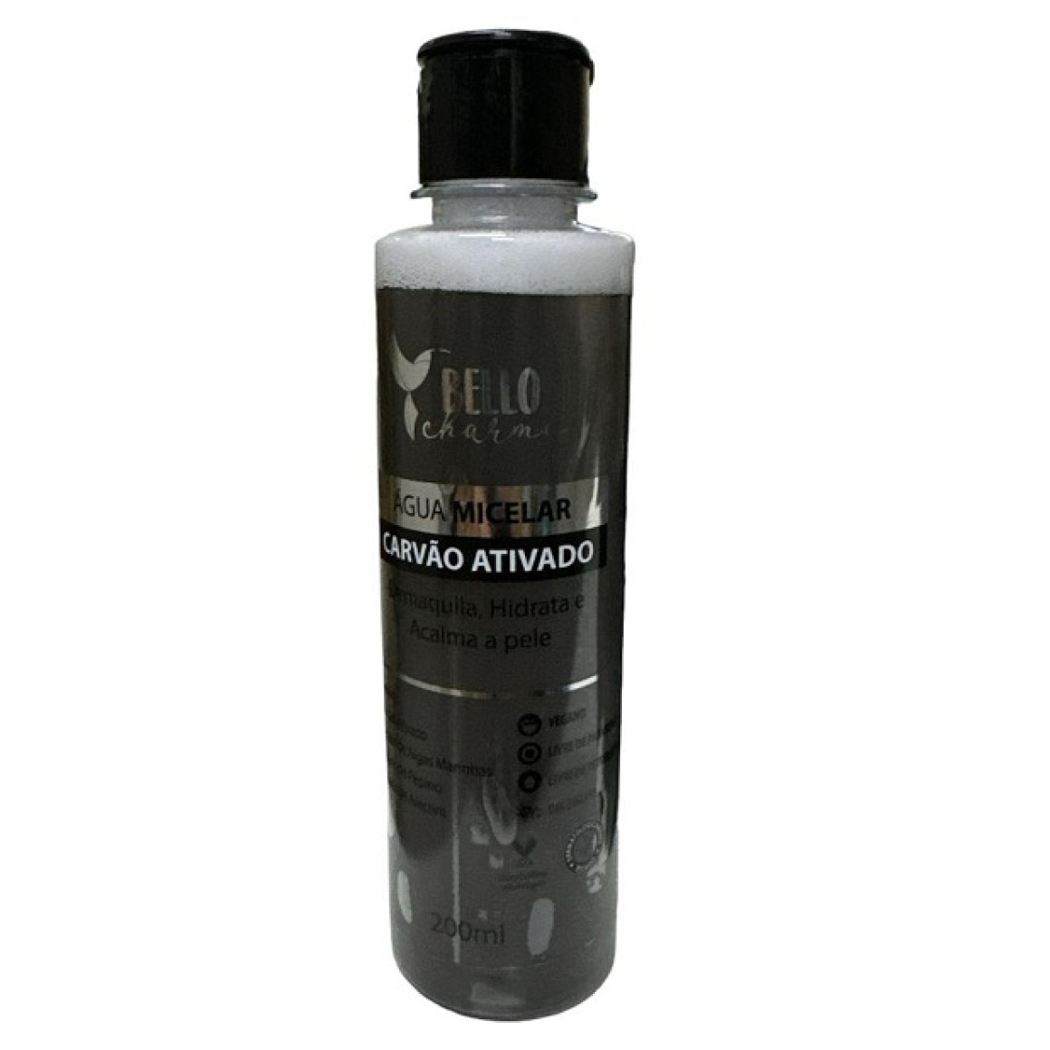 Descrição: A Água Micelar Carvão Ativado Bello Charme foi desenvolvida para promover uma limpeza facial suave, removendo toda maquiagem e impurezas sem agredir a pele. Enriquecida com Carvão Ativado e outros extratos naturais para proporcionar limpeza profunda e sensação de frescor.