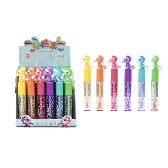 Descrição: O Lip Gloss Mágico Splash - Vivai traz um toque de magia para sua coleção de maquiagem! Com 6 cores diferentes, esse gloss encanta com sua textura suave e brilho incrível. Perfeito para deixar os lábios hidratados e com um toque especial, ele é ideal para quem ama inovação e diversão na hora de se maquiar.