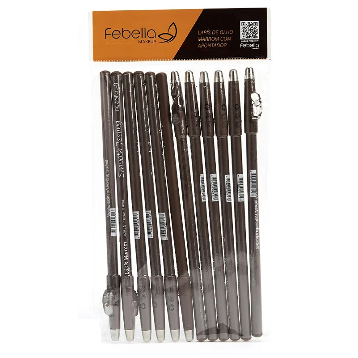 LAPIS DE OLHO MARROM FEBELLA PCT 12 PÇS