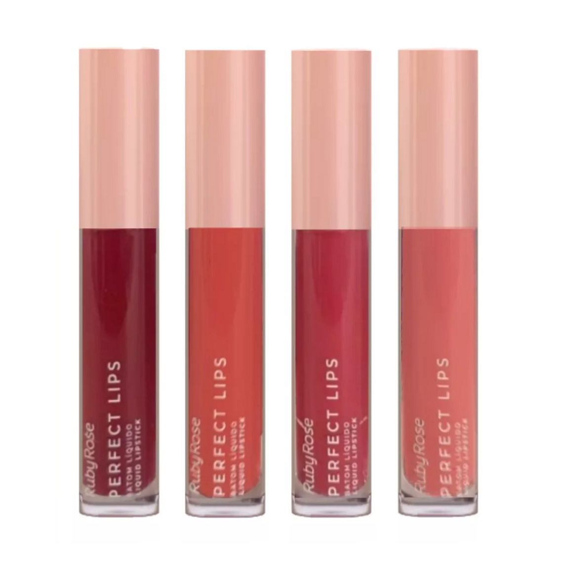 Descrição: Conheça o novo lançamento da Ruby Rose linha, o batom liquido perfect lips ! Esse batom possui cores simplesmente lindas, alta fixação e cobertura, um cheirinho delicioso além de uma embalagem elegante e pratica para levar. Ele serve para usar no dia a dia e para dar aquele toque especial aos labios a noite.
