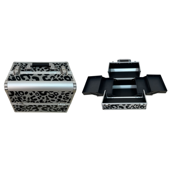 Descrição: Uso profissional e pessoal; Para guarda e transporte de maquiagens, bijuterias, joias e acessórios; Acessório que não pode faltar para os maquiadores; Design e estampa modernos; Lindo acabamento com perfis de alumínio; Fechadura com 2 chaves (1 reserva);