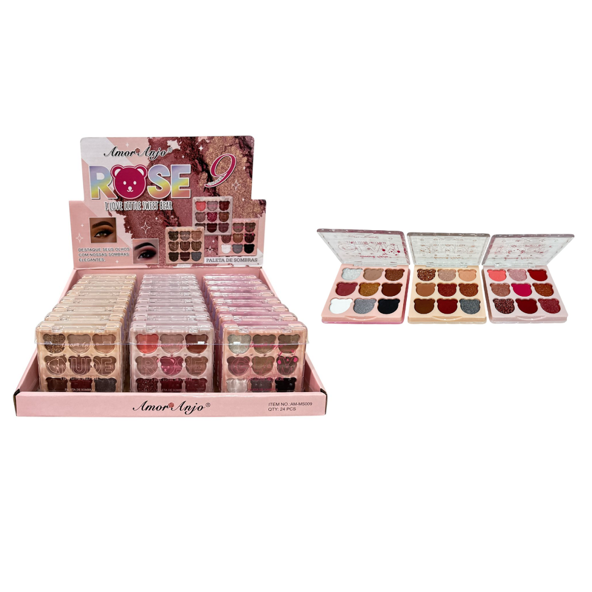 PALETA DE SOMBRAS ROSE 9 CORES AMOR ANJO CX 24 PÇS