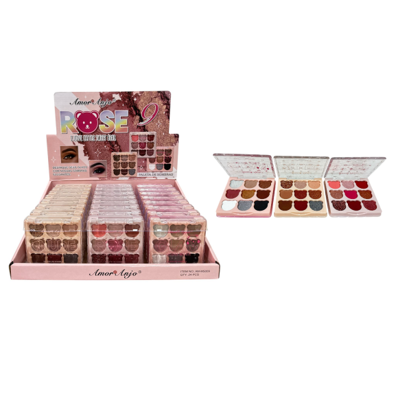2. PALETA DE SOMBRAS ROSE 9 CORES AMOR ANJO CX 24 PÇS