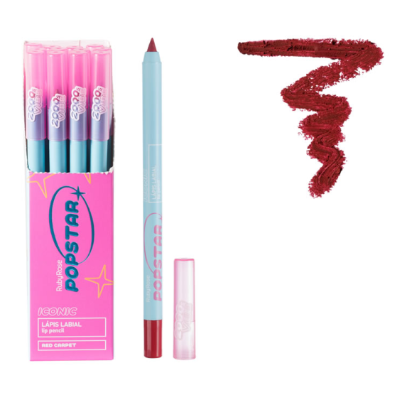 Descrição: Com textura macia e alta pigmentação, o Lápis Labial Iconic Pop Star Ruby Rose desliza suavemente nos lábios, realçando sua forma.