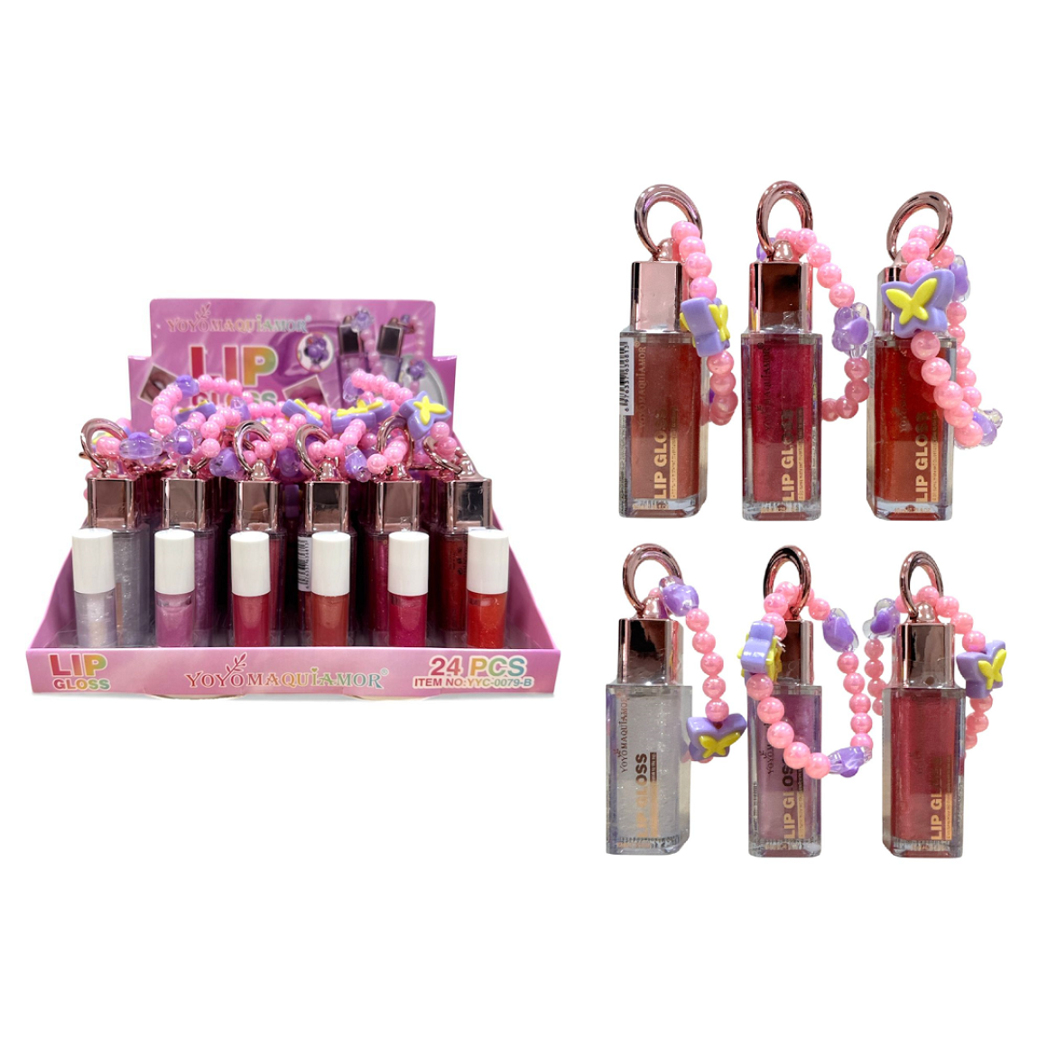 2. LIP GLOSS COM PULSEIRA YOYOMAQUIAMOR CX 24 PÇS