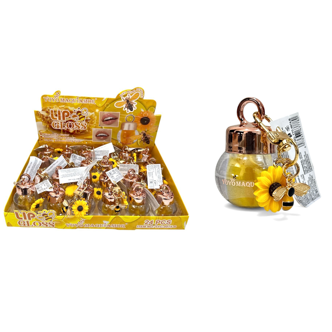 Descrição: O Lip Gloss Mel é o acessório perfeito para quem quer lábios bonitos, hidratados e com um brilho elegante. Além de funcional, ele possui um design moderno com detalhe de girassol e abelhinha, tornando-se um item que chama atenção e complementa qualquer look.